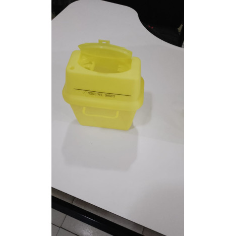 A durable 3-liter puncture-resistant yellow safety container with a secure lid, ideal for organizing and enclosing small disposable sharp items.