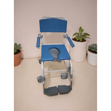 The Drive Aston Shower Commode chair is used for showering and toileting. The adjustable blue moulded seat provides comfort for the user.